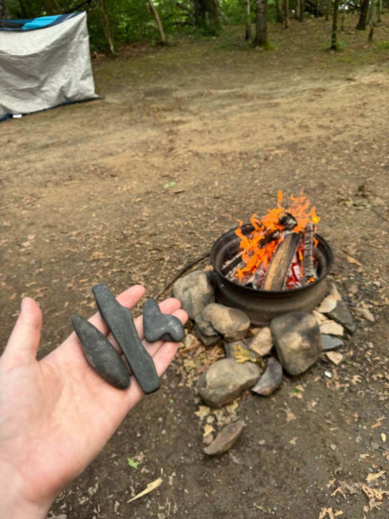 This morning, we hardboiled some eggs over the fire for breakfast, packed up the tent, and checked out the Delaware River before heading on our way! I found a couple cool rocks to bring back to the kids.